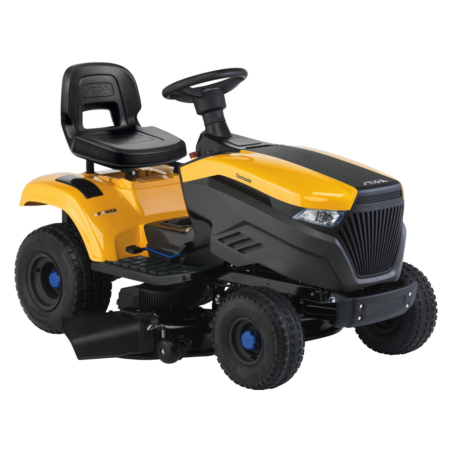 Stiga Tornado 398e Akku-Rasentraktor mit Seitenauswurf