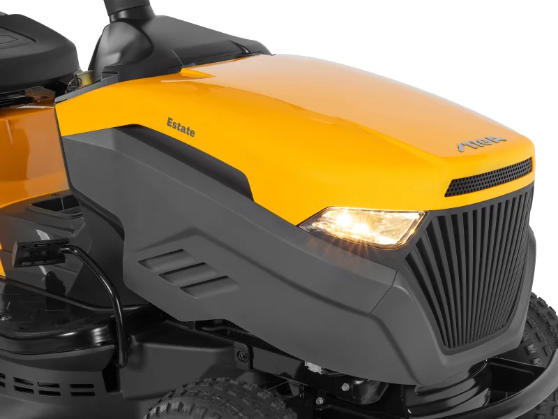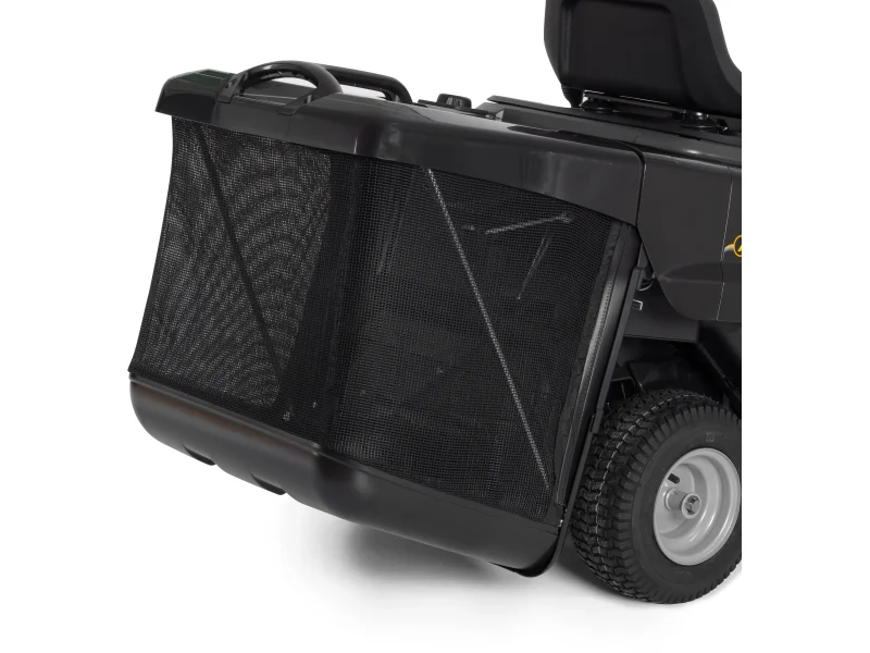 Das Schneidsystem ist mit einem Einmessermäher mit einer Schnittbreite von 66 cm ausgestattet, die zentral in 5 Positionen von 30 mm bis 64 mm eingestellt werden kann. So kann der Aufsitzmäher für jede Situation mit den richtigen Einstellungen arbeiten. Das 2-in-1-System bietet zudem die Möglichkeit, zwischen Seitenauswurf und Fangkorb zu wechseln.