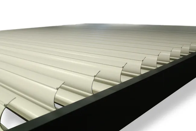 Die Pergola Caleta besteht zu 100 % aus Aluminium. Ihre Struktur ist anthrazitgrau. Die weißen Lamellen reduzieren die Hitze unter der Pergola. Die Ausrichtung ermöglicht optimale Sonneneinstrahlung und Temperaturregulierung. Jede Lamelle verfügt am Ende über eine Gummidichtung für eine wasserdichte Abdichtung. Die Pergolabalken sind mit Entwässerungsrinnen ausgestattet, die das Wasser zu den Säulen ableiten. Am Fuß der Säulen befindet sich ein Spalt zur Entwässerung. Die Montage ist einfach. Dank der Seaside-Beschichtung eignet sich die Pergola auch für den Einsatz in Meeresnähe. Maße: 413 x 308 cm (Breite x Höhe).
